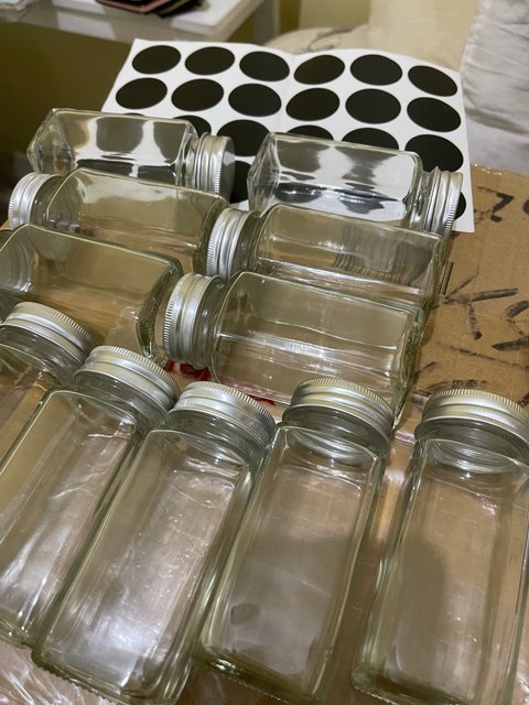 - COMPLETE SQUARE SPICE CONTAINER SET: 12 clear glass spice jars are ready to hold your favorite spices! Organize your kitchen cabinets and spice racks with our spice containers and 24 labels.