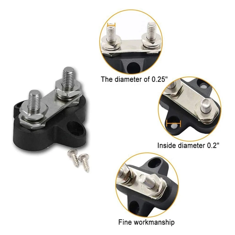 Product use: The terminal is suitable for customizing the vehicle or replacing the battery. Suitable for 12-24V buses, ships, cars, trucks, trailers, boats, RVs, carriages and other industrial equipment. Allows heavy cable to be terminated for one or more connections.Used as a battery junction box for cars, vehicles, RVs and boats, also for electrical equipment and solar cells etc.