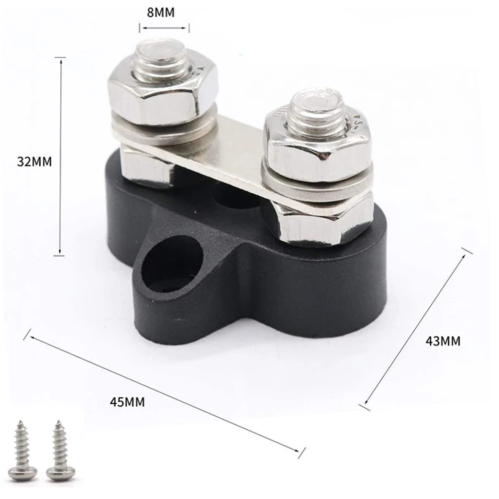 Product Function: Dual 5/16 inch stainless steel screws, lock washers and nuts are strong and rust-proof for connecting two or more connectors/wires, as battery terminals for battery power and ground connections. For custom or Very useful to relocate batteries and wires.