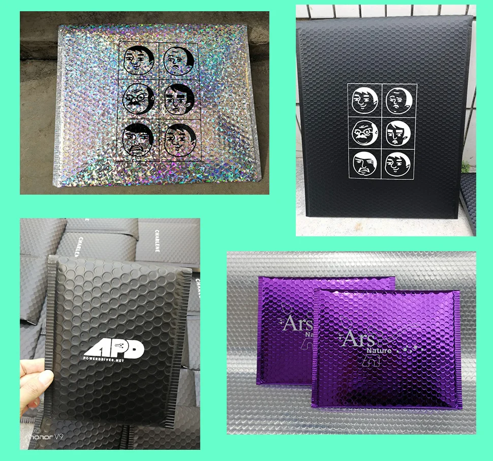 50pcs Custom Logo Holographic Bubble Mailers Glamour Hologram Colorful. Silver Shades Metallic Cushion Padded Shipping Envelopes