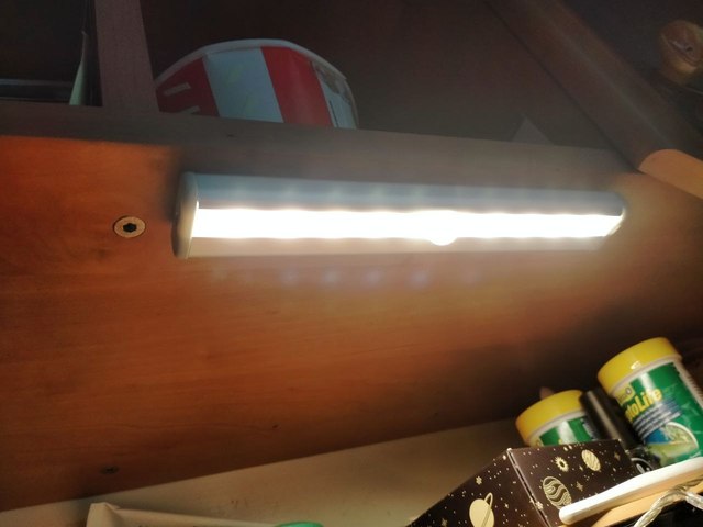 The lamp is received and works. I was already buying this product, it worked for a couple of days in the corridor from one charge, as I noticed that the light was on, I went to look, and there the cat was spinning under the lantern. So, I don’t know how long it will last without cats and dogs. Inside the 7.5x26x20 without marking, there is a place to add your own. When charging, the controller heats up, but not very much. I like the lamp, I took a small 300mm. Magnets and tin on foamed double-sided tape hold well. You can go to the closet, to the toilet, to the corridor where fantasy will tell…