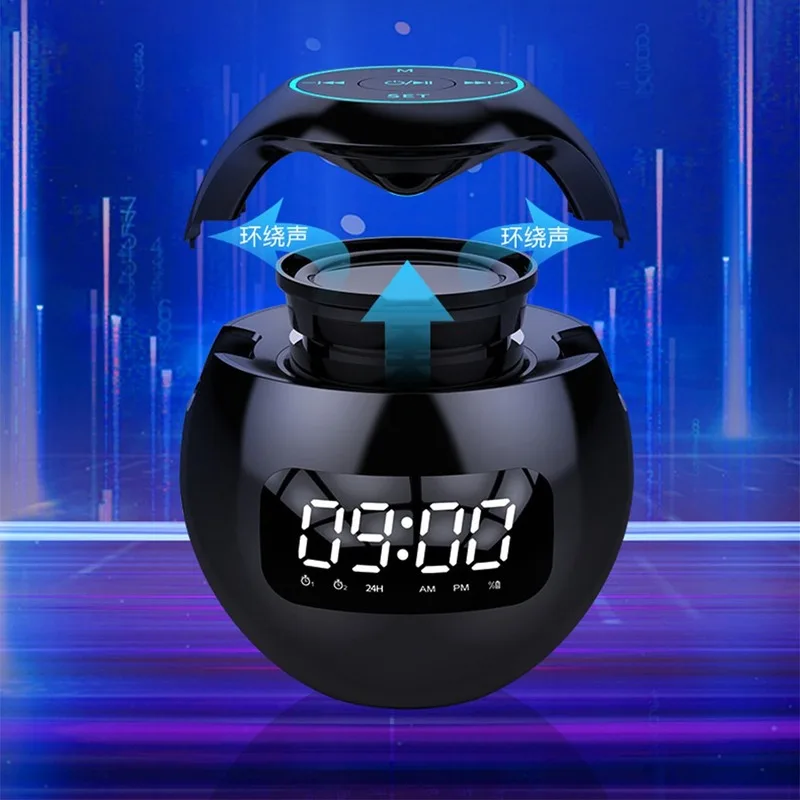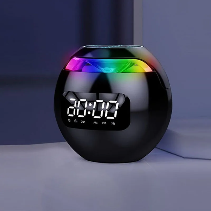 The alarm clock has cool colorful lights. It is both an alarm clock and a bluetooth speaker, and it is also an ideal decoration at home. This smart alarm clock comes with two independent alarm clocks. You can freely choose different alarm clocks on weekdays and rest days, without affecting each other, and can be turned on and off freely. It has a high-quality magnetic speaker, the bass is very full, the treble is very loud, and the sound is full of layers. And Bluetooth 5.0 makes it support a lot of bluetooth devices, it can quickly connect and transfer data, ensure the authenticity of the sound, and bring you the most satisfactory music experience. Simple buttons can conveniently and quickly control play and pause, switch music and adjust volume. TF card: It can read TF card data and play music. Hands-free call: Connect the speaker to the phone's Bluetooth, you can use it as the phone's speaker to play the call sound in real time.