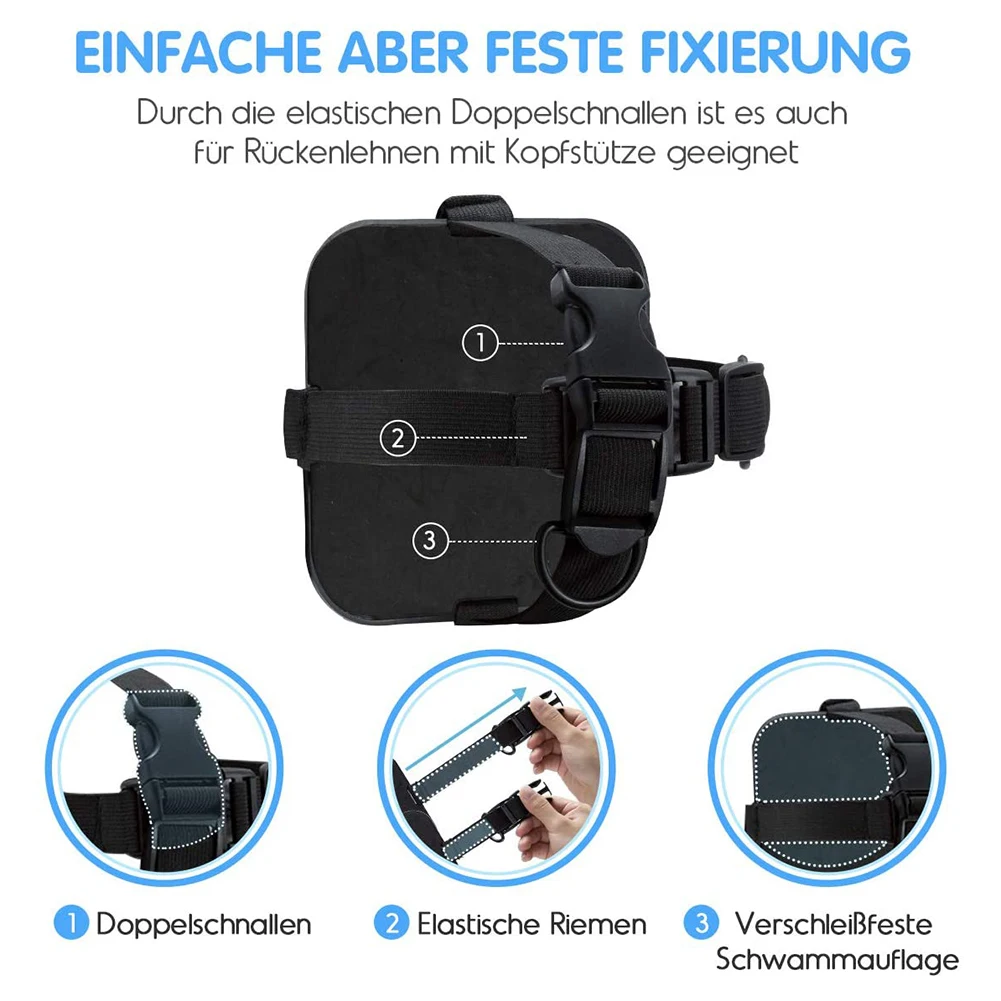 360 degree free rotation design (adapt to any headrest height).