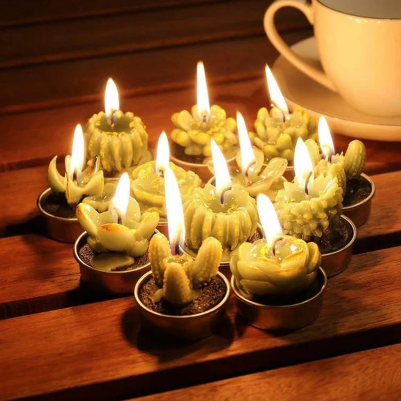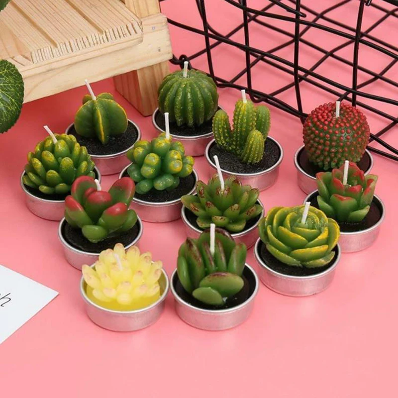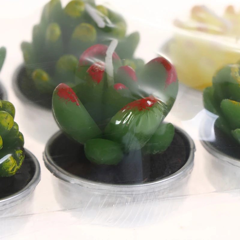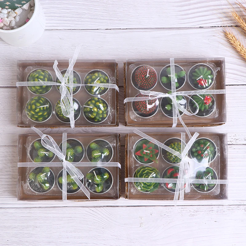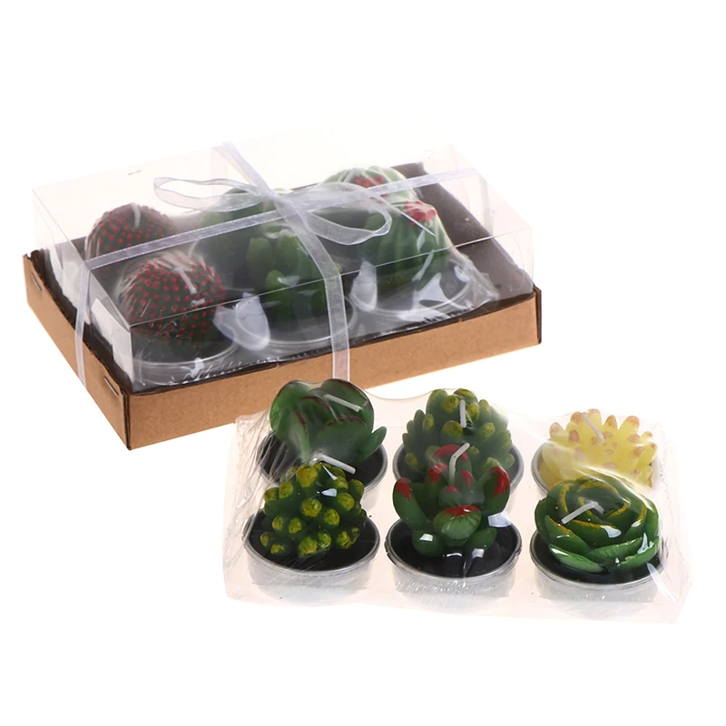 6Pcs 3D Cactus Candle Simulated Plant Set Home Decoration Candle Tea Light Decor