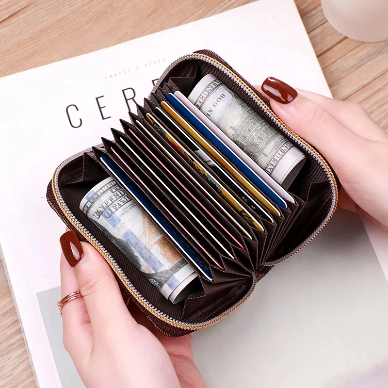 For Women New Fashion PU Leather Cardholder Wallet High Quality Zipper ID Credit Card Holder