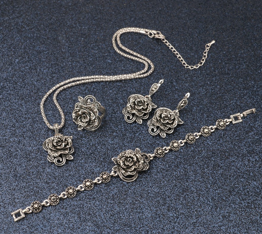 Crystal Rose Ring, Necklace, Earrings and Bracelet Set