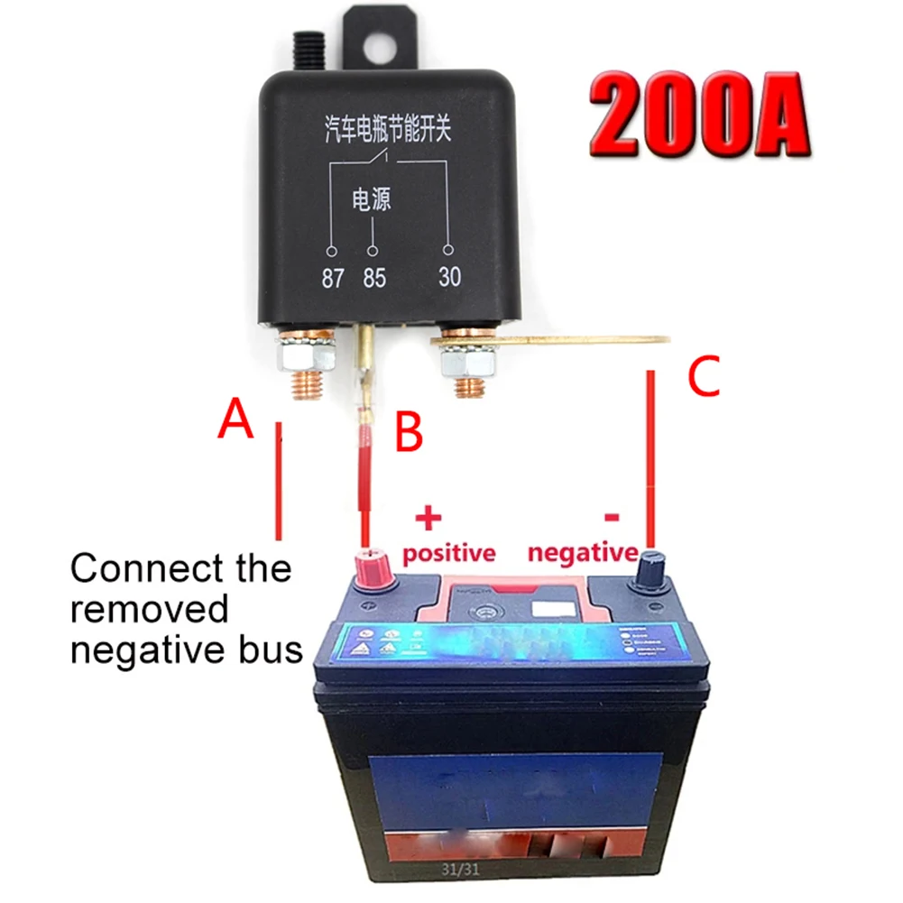 3. Fix the relay on the negative pole of the battery;