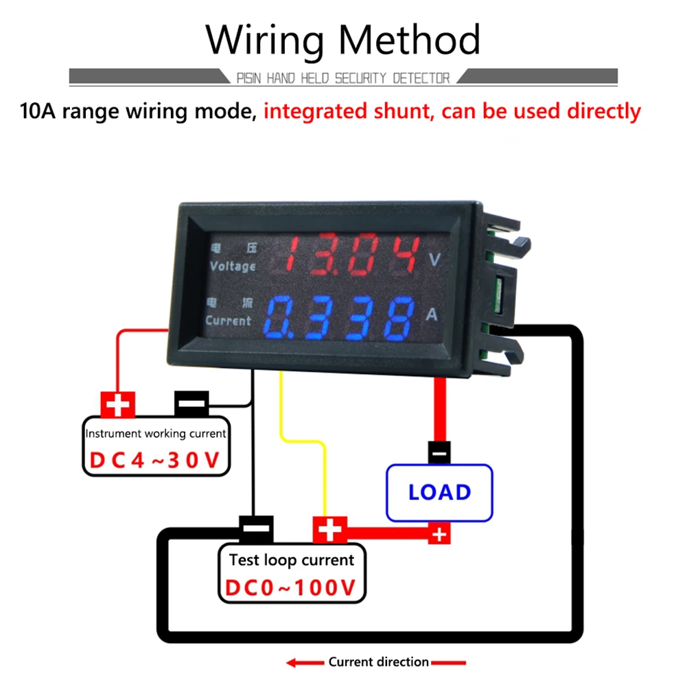 Current measuring range: DC 10A (display mode 0.000A~10.00A)