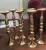 They’re very easy to build. The high Rod enters the base and uses the NUT to hold the weight and double nut connector to fit the top of the base. Then put the smallest rod in the connector and middle and dish segments on. Use the washer and nut at the end of the rod and squeeze. The brackets are very nice in person and very tough when they are pressed. I can’t wait to use them for my wedding.