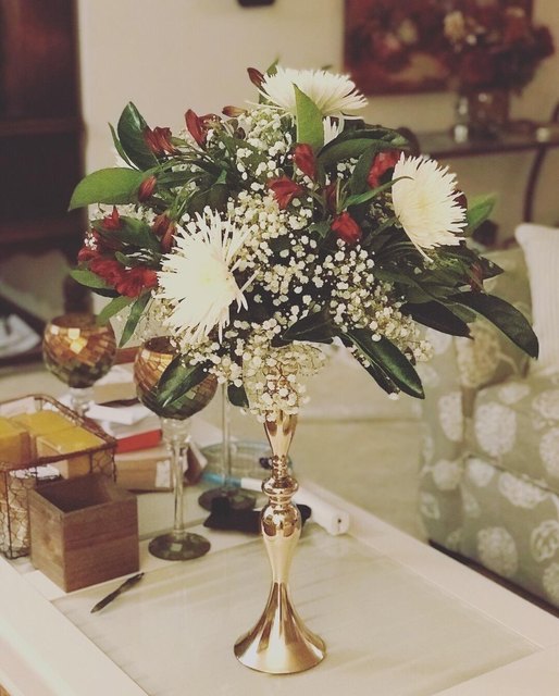 Elegant Candle Holder with It can hold your favorite flowers like hydrangeas, roses, peonies, or you can add some cascading details, greens like panda grass,