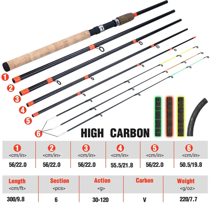 New Feeder Fishing Rod Lengthened Handle 6 Sections Fishing Rod L M H Power Carbon Fiber Travel Rod Fishing Tackle