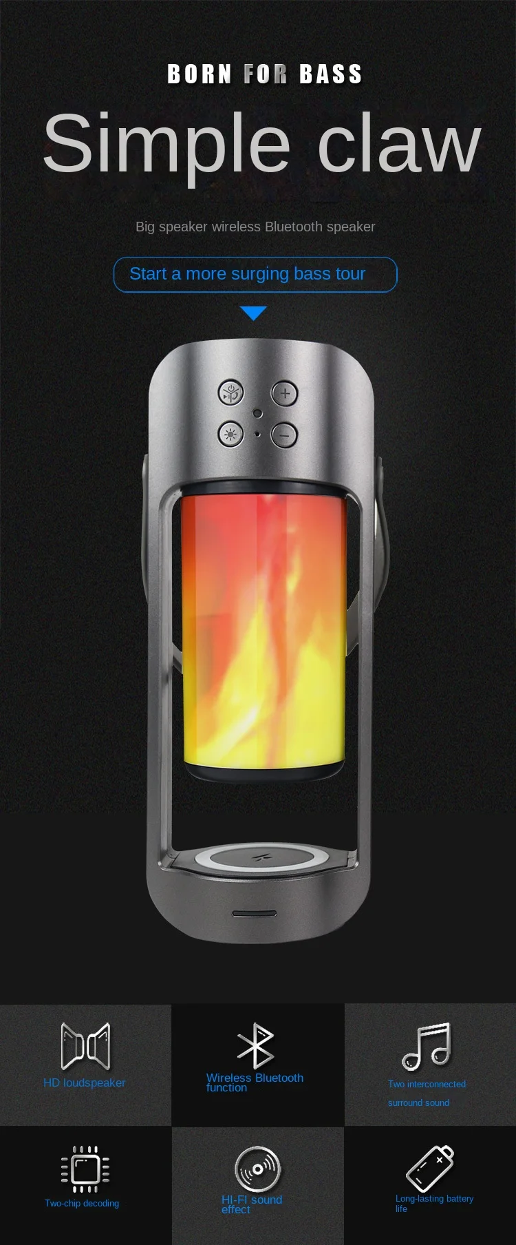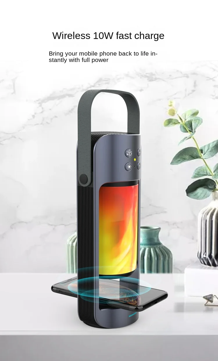 Flame Light Speaker Wireless Charging Function Bluetooth-compatible Portable Outdoor Emergency Light TWS Sound Box Home Theater