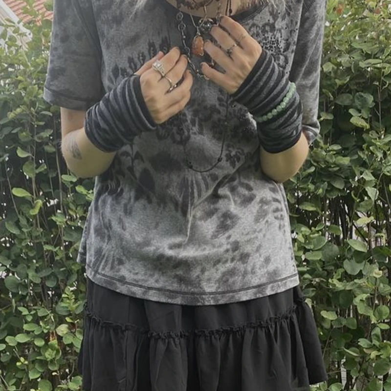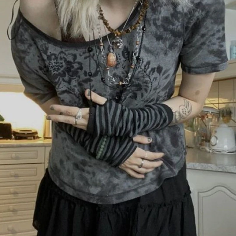 Round neck short sleeve t-shirt, flower print patterns, contrast color, simple and stylish.