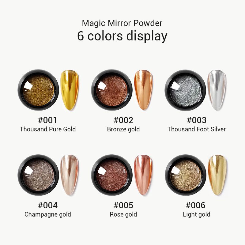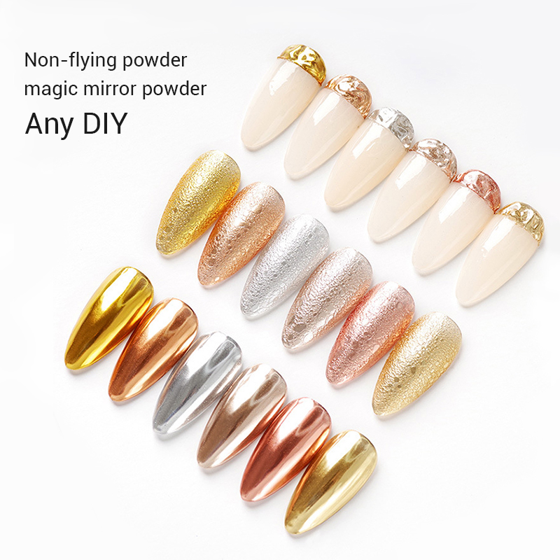 Hot Sale Six Color Nail Dipping Powder Solid Magic Mirror Laser Titanium Gold Powder For Nail Art Acrylic Powder