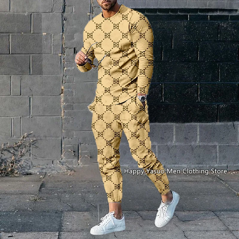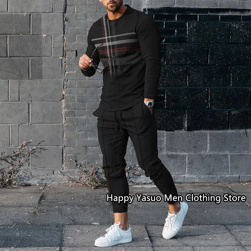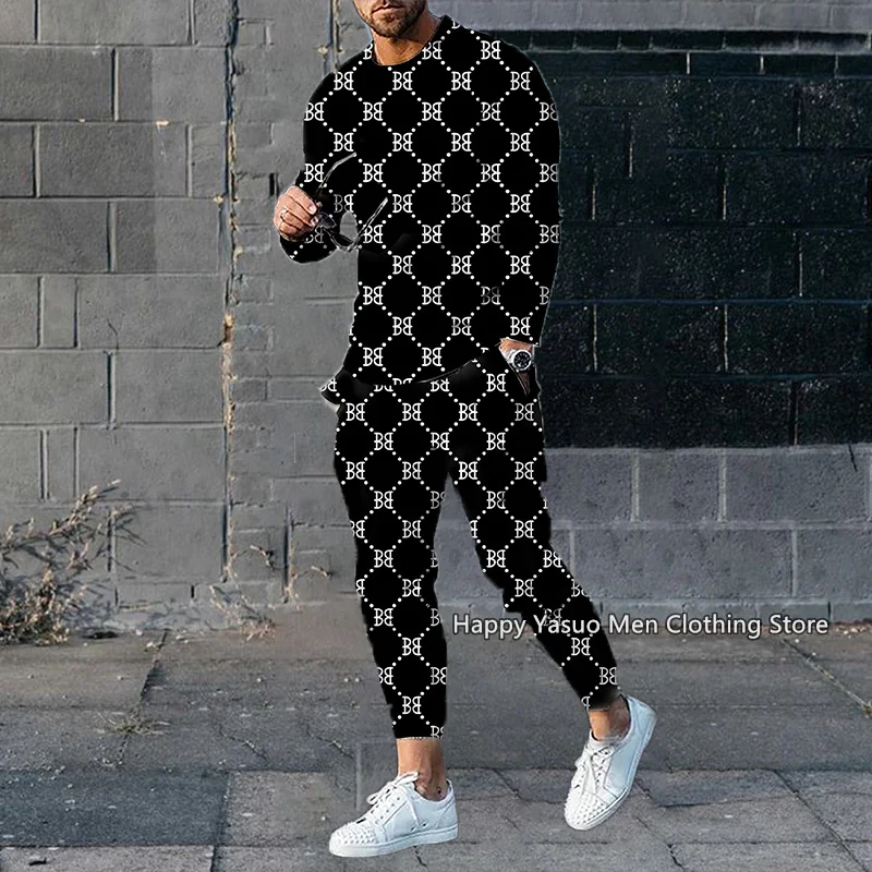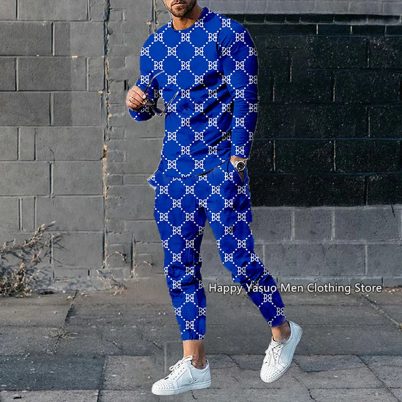 Summer Men 3D Print Long Sleeves T shirt +Long Pants (jogging suit)