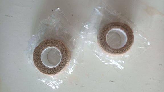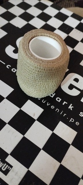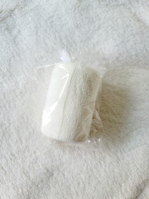 This bandage is a non-adhesive tape that sticks to itself, no need for pins or other tapes to keep it together. It is ideal for applying compression to injured muscles as it does not stick to the skin or hair.