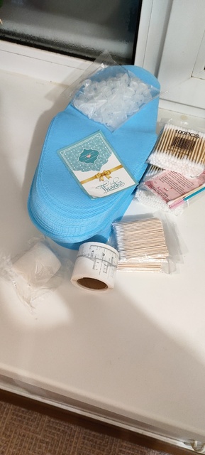 Came in a few weeks. Average quality. Of the three white bandages, only two are white, the third is some yellowish (dirty gray).