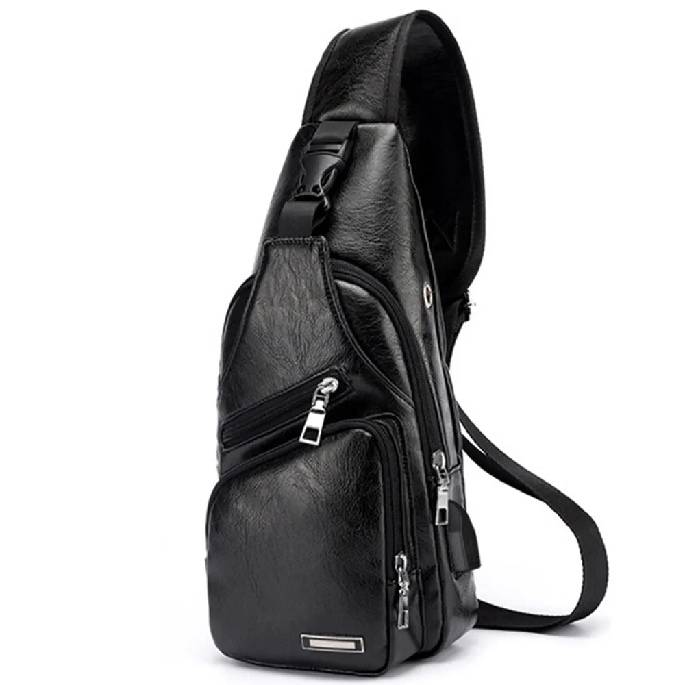 Men’s Shoulder Bag Charging Bag Sports USB Chest Bag for Outdoor