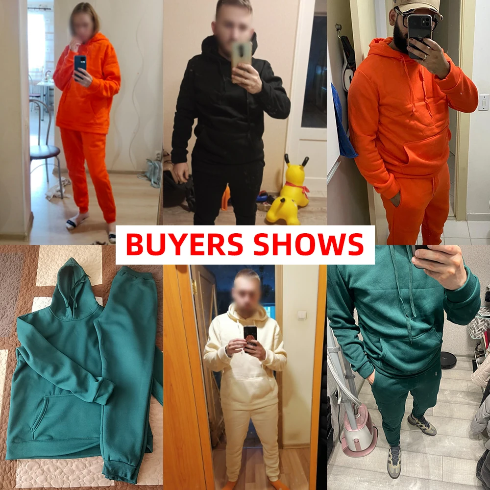 Men’s Tracksuit Jogger Sportswear Casual Sweatershirts Sweatpants Streetwear Pullover Solid Color Fleece Sports Suit Men Sets