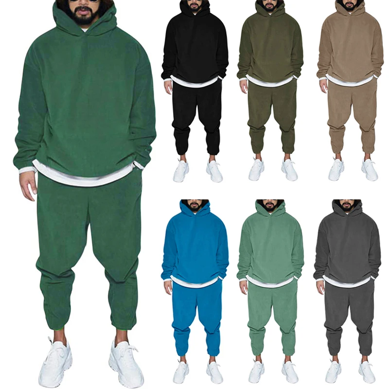 Men’s Tracksuit Jogger Sportswear Casual Sweatershirts Sweatpants Streetwear Pullover Solid Color Fleece Sports Suit Men Sets