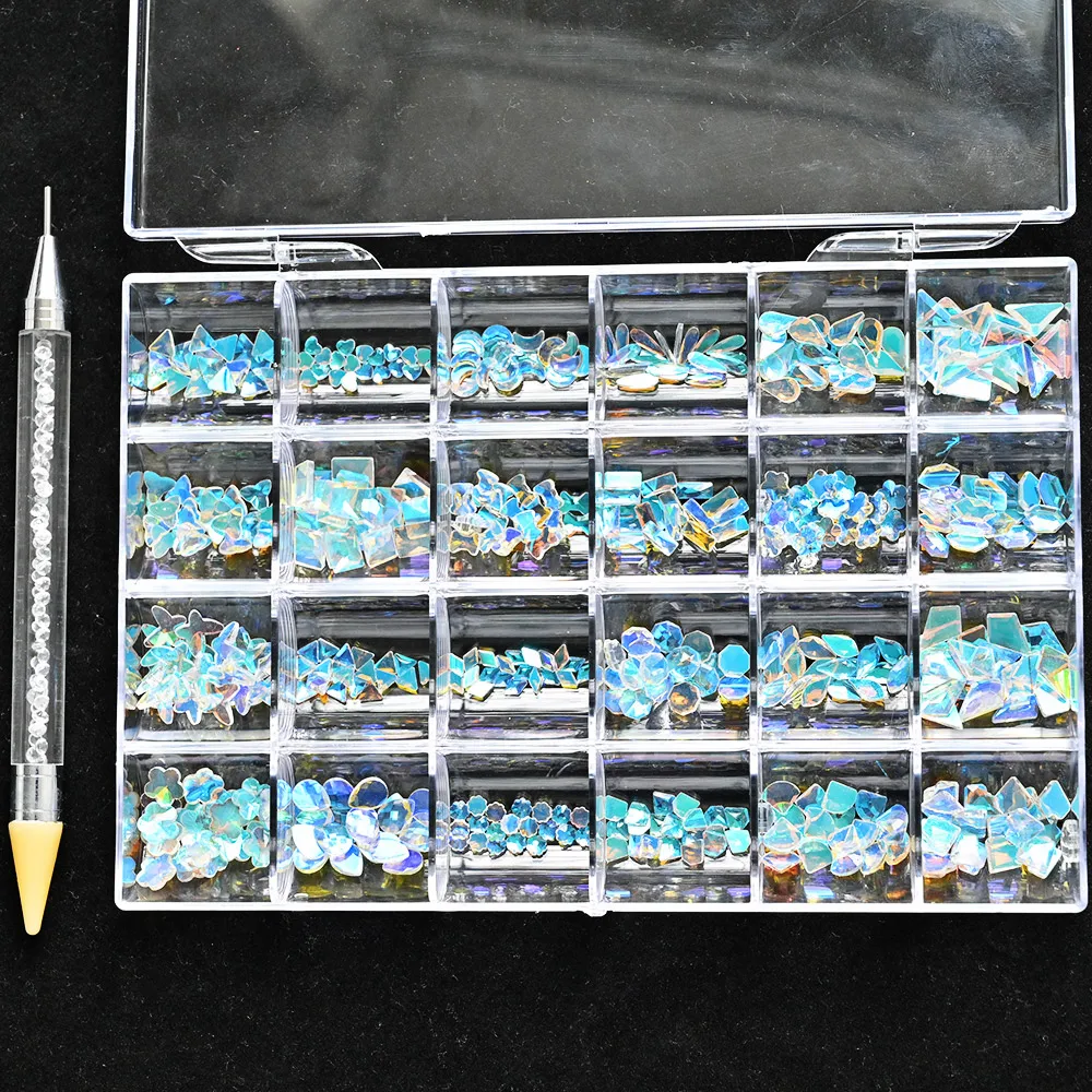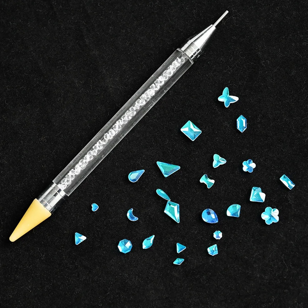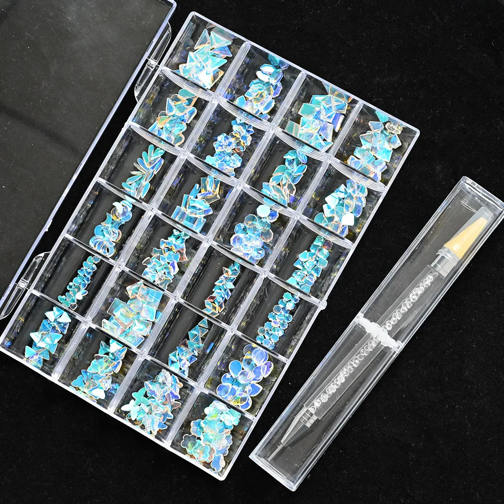 400 PC Crystal Rhinestone In Grids 20PC/Shape Flat- Back Nail Art Rhinestone Gem With 1 Pick Up Pen In Clear Big Box