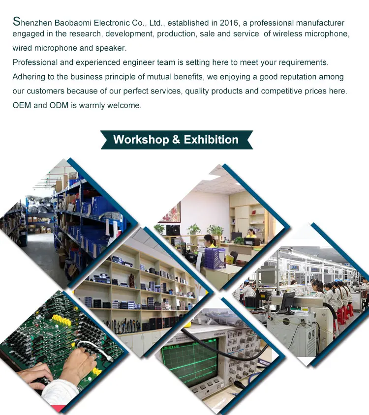 Jesteśmy profesjonalna produkcja mikrofonu i głośnika, który został zweryfikowany przez alibaba. Cały nasz produkt zostanie podwójnie sprawdzony przed wysyłką. A wideo masowej produkcji jest dostępne do sprawdzenia.