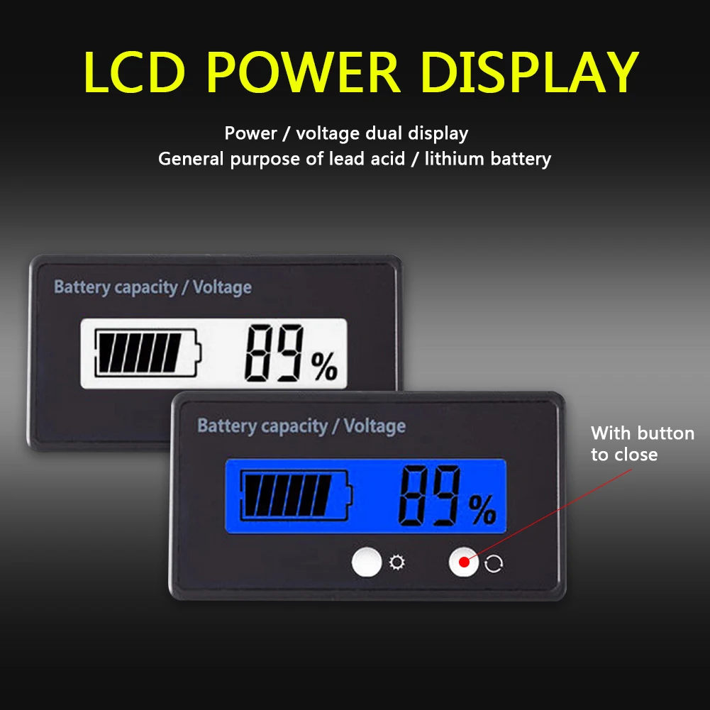 Digital Battery Monitor Backlit Car Lead Acid Lithium Battery Capacity Tester Voltmeter Voltage Meter Percentage Level Indicator