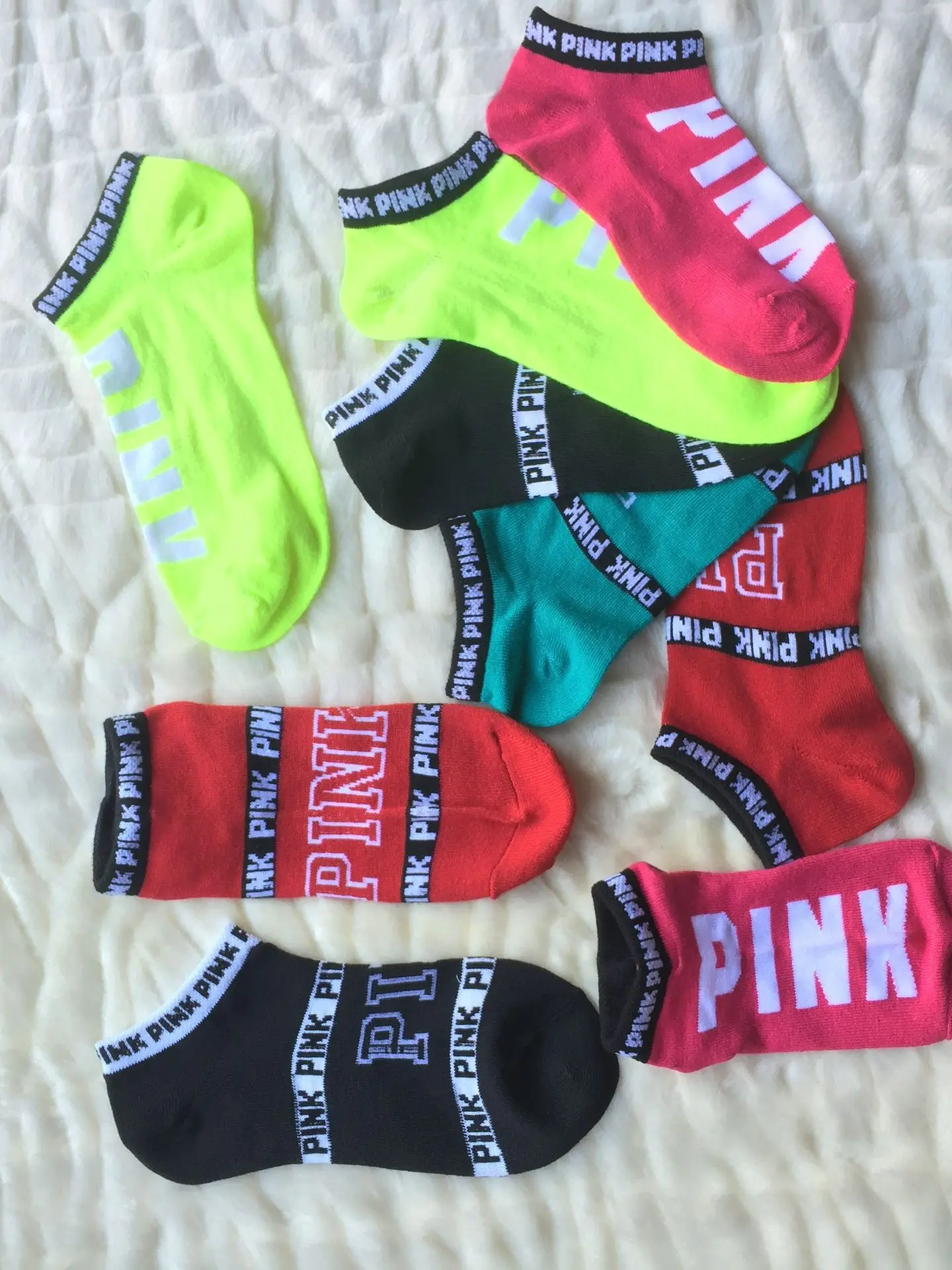 PINK Ankle Socks Cotton Creative Happy Casual Sports Short Ankle Pink Letters Socks Unisex