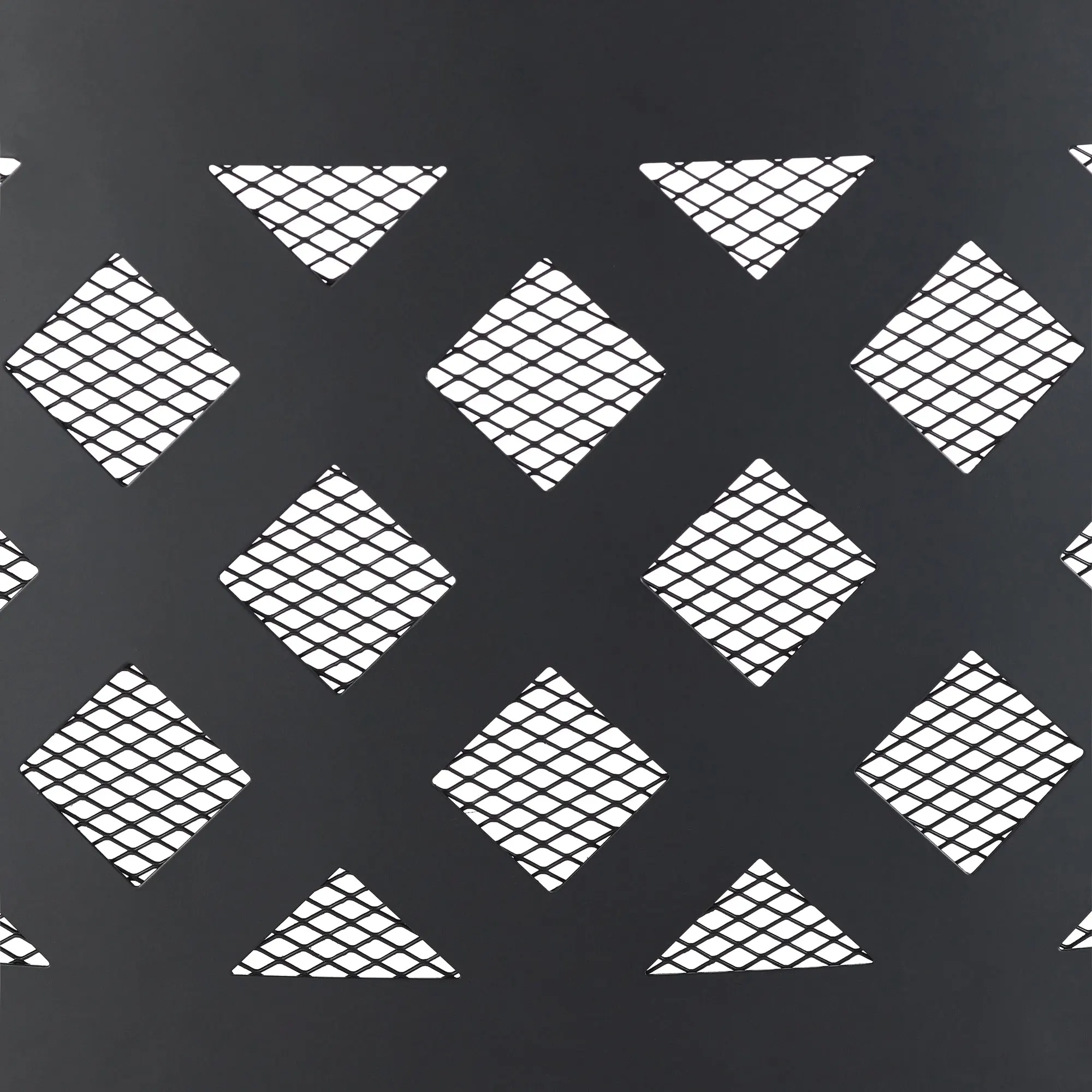 The open lattice pattern with integrated spark screen shows the beauty of the flame while keeping sparks under control.