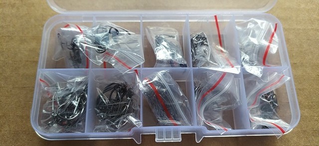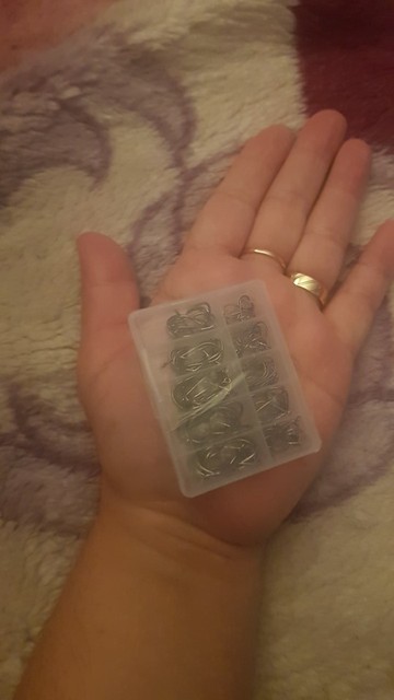 A box with a multitude of hooks of different sizes has been received. Very happy with the article. Just like in the picture.