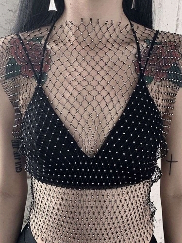 –Rhinestone Mesh Tank Top for Festival