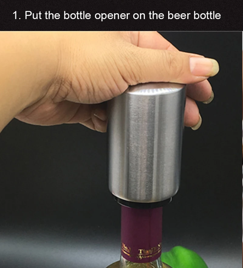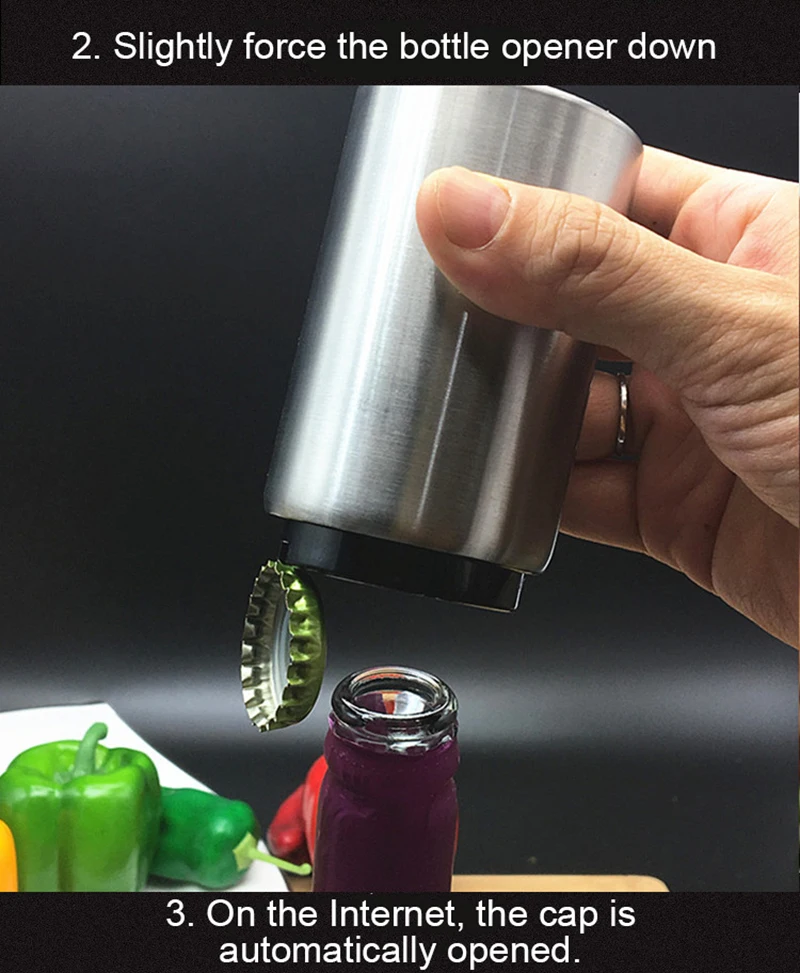 Stainless Steel Beer Bottle Opener, Automatic and Effortless.