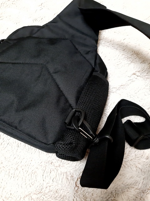 I thought in the kit there will be a belt around the belt. But apparently I misunderstood. In general, the bag is good roomy, the bottle in the side compartment is stuck .. But I got caught with a defect: one of the rings of fastening was cracked (