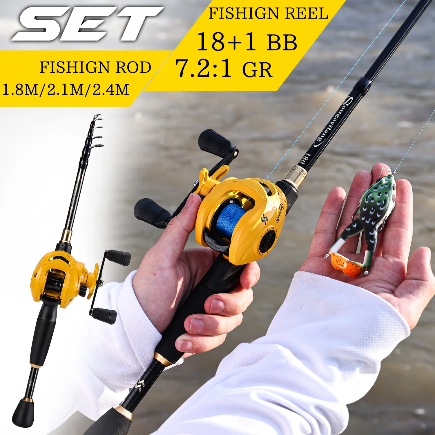 1.8-2.4m Telescopic Fishing Rod and 7.2:1 Gear Ratio Baitcasting Reel with Fishing Line Fishing Lures Full Kits