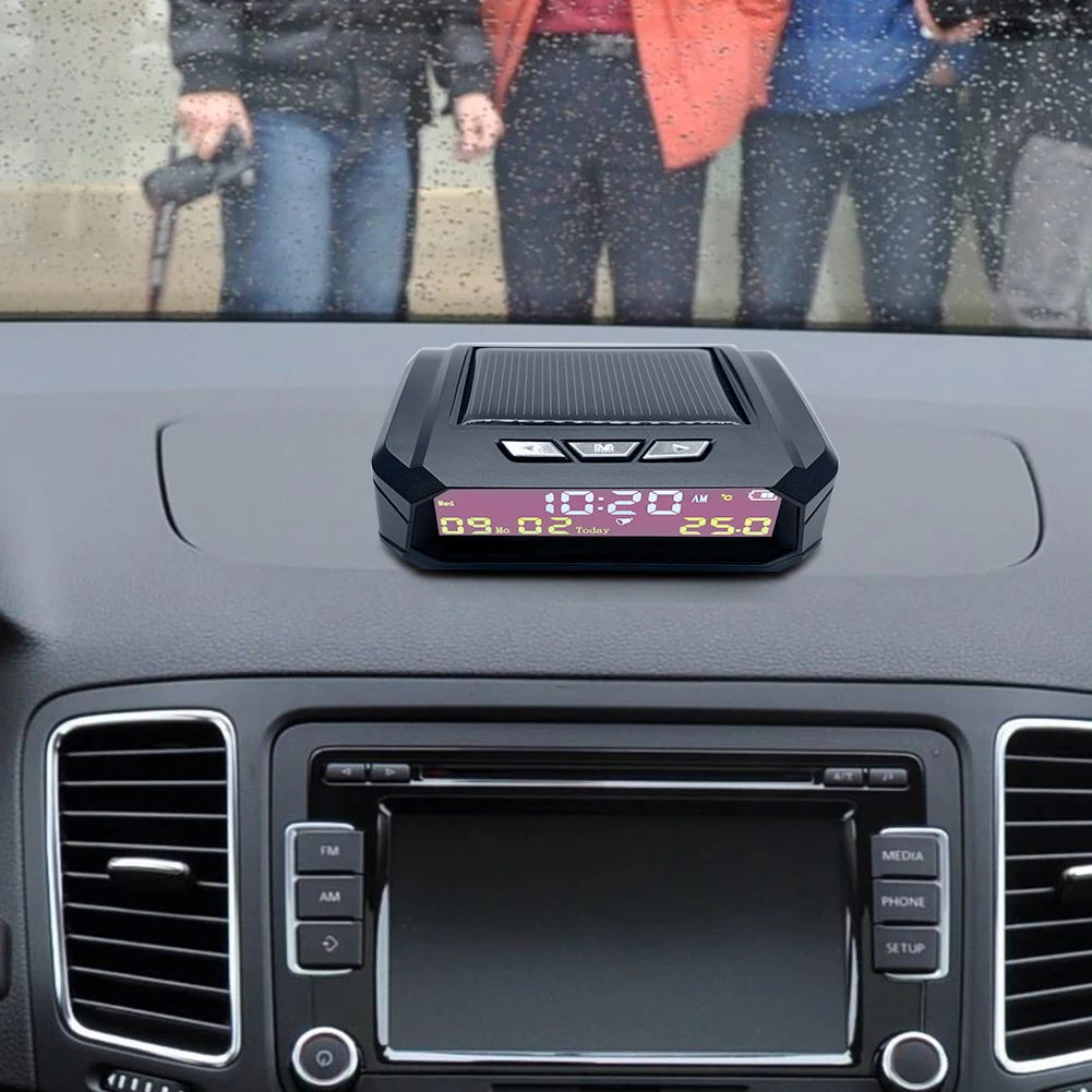 TPMS Look Solar Car Digital Clock with LCD Time Date In-Car Temperature Display for Outdoor Personal Car Parts Decoration