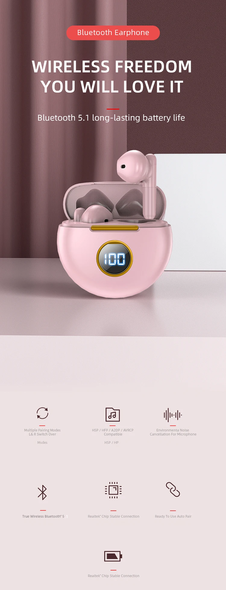TWS Wireless Headphones Bluetooth Earphones HIFI Deep Bass Stereo True Handsfree Sports Earbuds Headset with Microphone