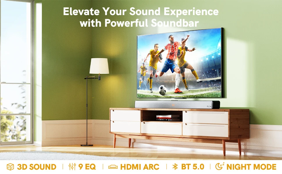ULTIMEA TV Soundbar 3D surround sound for a more immersive sound experience