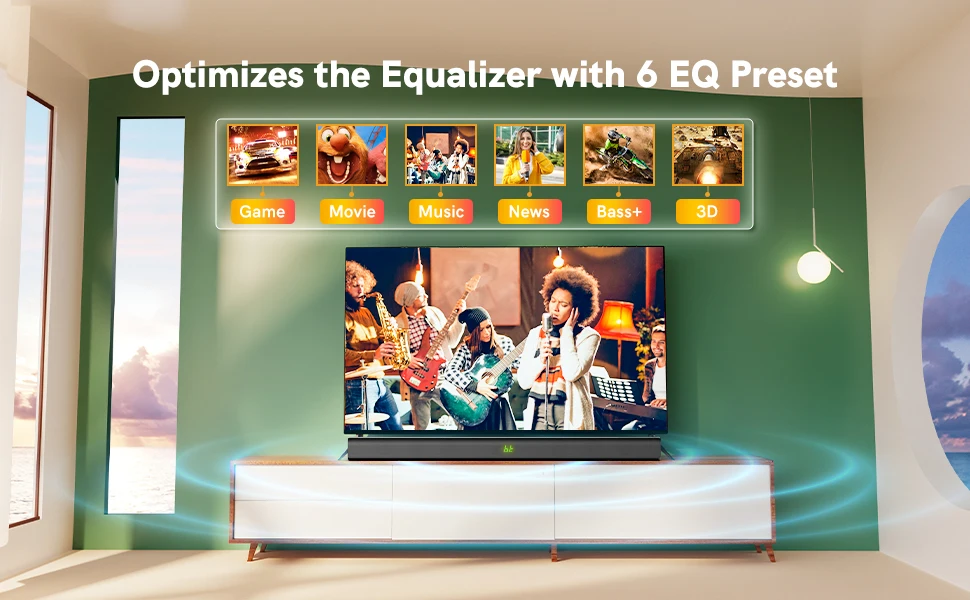 Elevate your sound experience with a fine-tuned equalizer: Customize your sound with Bass+, 3D, Game, Movie, Music, News at the touch of a button. Whether it's an exciting explosion scene or the clear sound quality of a musical instrument, you'll be able to find a suitable EQ mode. Enjoy an immersive panoramic experience.