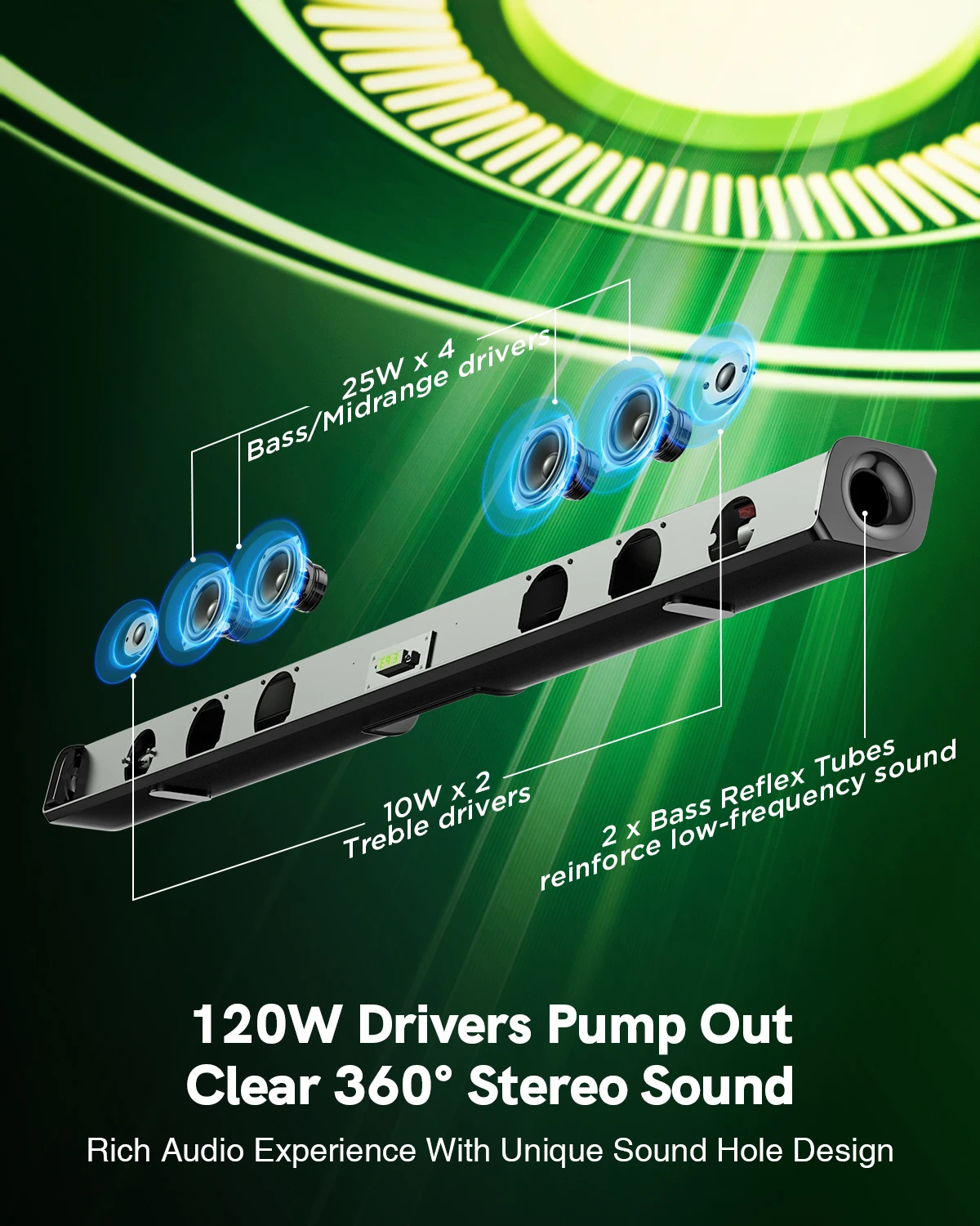 ULTIMEA 120W TV Soundbar Speaker Home Theater Subwoofer Wireless Bluetooth Speakers 3D Surround Stereo Soundbar with LED Display