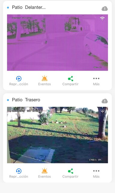 I got the two cameras super easy to configure the first time. After two days one of the two seems as if it had stayed in night vision and I have restarted the camera several times and there is no way is bad. Attached photos of the vision of the two cameras at the same time.